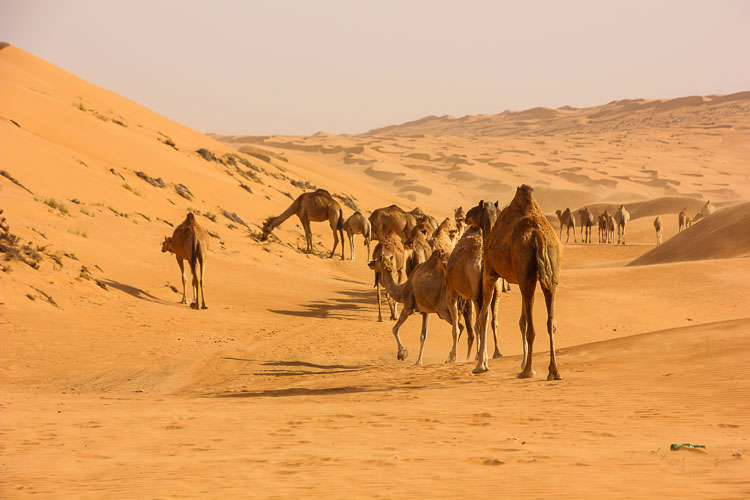 Die kommenden Tage stehen ganz im Zeichen der Wüste. Sie fahren die Küstenstraße entlang nach Süden, besuchen unterwegs in Sur eine traditionelle Dhow-Werft, die diese Holzschiffe immer noch nach alter Tradition fertigt. Kurz vor der Wüste heißt es Druck aus den Reifen lassen und dann geht es mit Ihrem erfahrenen Guide rasant durch die Dünen der Wahiba Sands. Unterwegs wird Ihnen sicherlich das ein oder andere Kamel begegnen, bevor Sie ihr Wüstencamp erreichen. Im Camp gibt es zahlreiche Aktivitäten, wie Sand-Boarden, mit Kamelen in die Wüste reiten und traditionell lebende Beduinen-Familien besuchen.