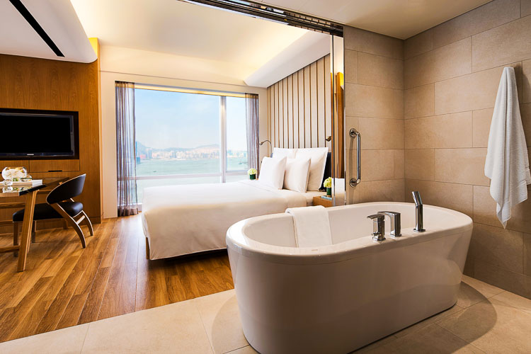 - Die Harbourview Zimmer bieten mit bodentiefen Fenstern - vor allem nachts - einen spektakulären Ausblick