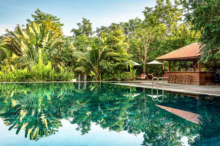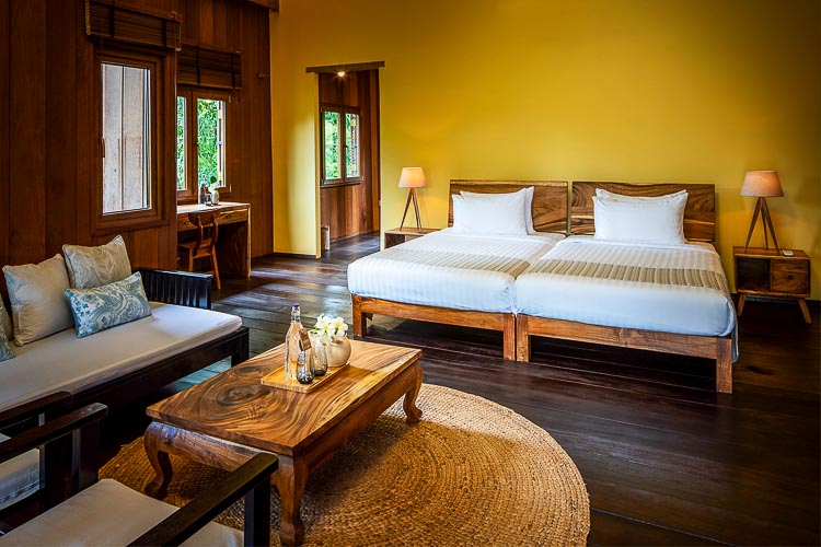 - Die Khmer-Bungalows sind alle einzelstehend und bieten bis zu 4 Personen Platz