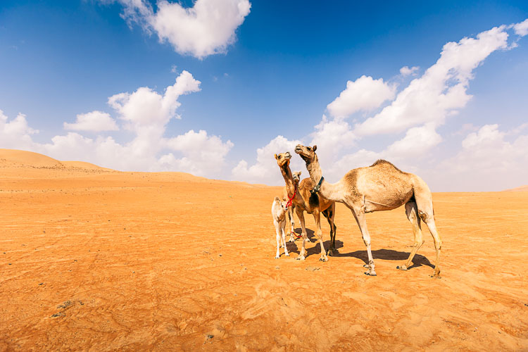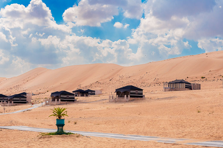 Hautnaher Kontakt zur Wüste und eine ordentliche Portion Abenteuer erwarten Sie in der Wahiba Sands. Schon Ihre Anreise im Geländewagen durch die meterhohen Sanddünen wird Sie schwer beeindrucken und Ihr Fahrer wird sicherlich großen Spaß dabei haben Ihr Adrenalin beim „Dune Bashing“ nach oben zu katapultieren. Mit etwas Glück treffen Sie unterwegs auf einen größeren Kameltrekk – einzelne Kamele werden Ihnen ganz bestimmt begegnen. Ihr Camp im Beduinenstil bietet Ihnen eine große Auswahl an Unterkünften – vom einfachen Arabischen Zelt mit Gemeinschaftsbad über ein gehobenes „Scheich-Zelt“ mit eigenem Bad bis hin zum knapp 40 qm großen „Prinzen-Zelt“ mit eigenem Bad, bodentiefen Panoramafenstern und Klimaanlage. Alle Zelte sind normal begehbar und verfügen über feste Betten. Am Abend können Sie den atemberaubenden Sternenhimmel genießen und den Tag am Lagerfeuer entspannt Revue passieren lassen.