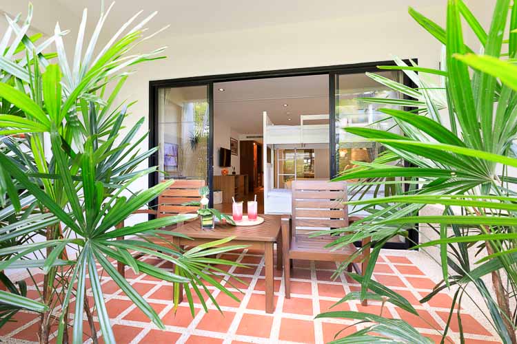 - Alle Zimmer sind entweder ebenerdig mit Terrasse oder befinden sich im 1. Stock mit Balkon