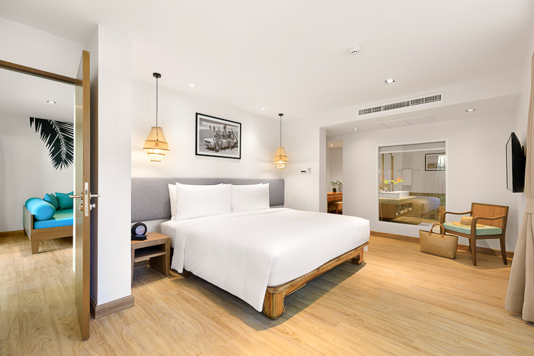 - Wenn Familien ein größeres Platzangebot zu schätzen wissen, bieten sich die Suiten mit separaten Wohn/Schlafraum für den Nachwuchs an