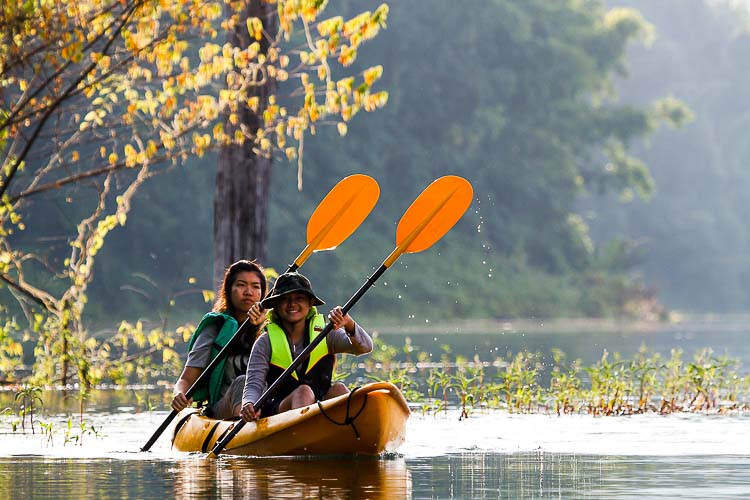 Hautnaher Kontakt zu Elefanten und eine ordentliche Portion Abenteuer erwarten Sie bei dieser Tour in den Dschungel des Khao Sok Nationalparks. Erkunden Sie die unverfälschte Natur im weitläufigen Regenwald und lernen Sie die Dickhäuter des Camps näher kennen. Während dieser vielfältigen Tour nächtigen Sie sowohl im Elephant Hills Camp als auch im Rainforest Camp. Zum einen finden Sie eingebettet in die tropische Landschaft luxuriöse Zelte mit bequemen Betten und voll ausgestatteten Badezimmern, wo Sie trotz der ursprünglichen Natur auf einen kleinen Pool nicht verzichten müssen. Zum anderen schlafen Sie direkt am See, fernab der Zivilisation in ähnlich ausgestatteten Zelten. Hier springen Sie zur Abkühlung direkt von Ihrer Terrasse ins kühle Nass.