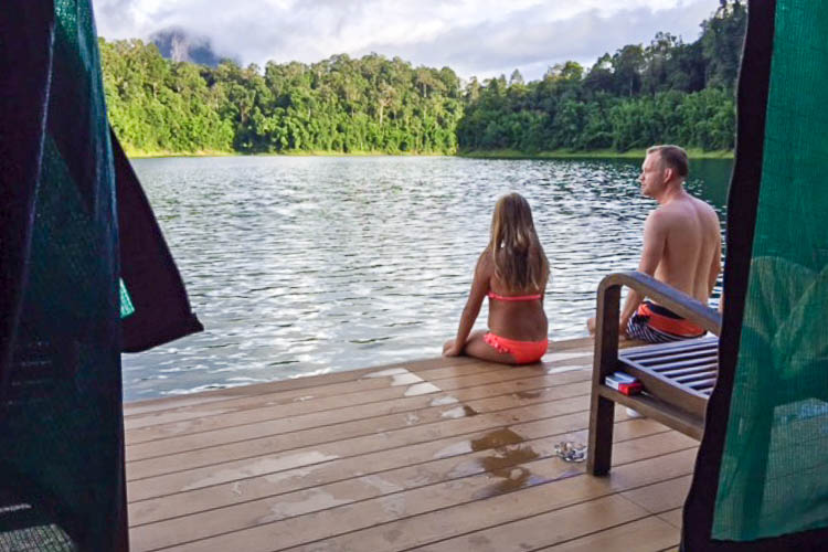 Mit dem Longtailboot ging es auf dem Cheow Lan Lake ca. 45 min bis zu den schwimmenden Zelten. Ziemlich atemberaubend waren der Anblick und später auch das Gefühl dort zu sein.