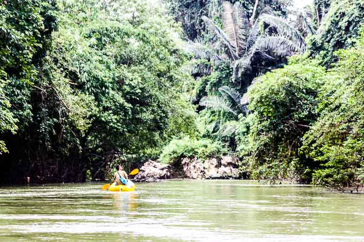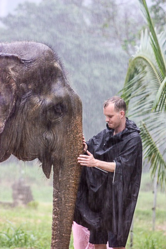 Mit den Kajaks ging es zu den Elefanten. Auch hier hat es wieder in Strömen geregnet, aber da wir das schon gewohnt waren, hat es uns absolut nichts ausgemacht. Es war trotzdem angenehm warm.